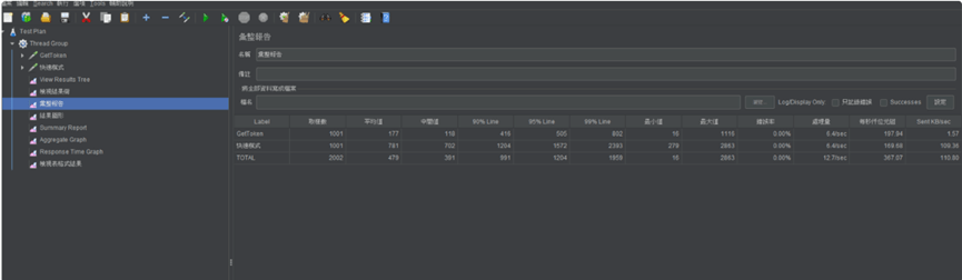 使用的工具為JMeter,根據系統的測試腳本,模擬多人上線時進行交易的模擬,並將之系統反應統計數據紀錄,輸出結果包含平均平均值、中間值、90%Line、95%Line、99% Line、最小值、最大值等測量數據,我們將會在排除外部周邊干擾因素下,確保90% Line的API反應時間為3秒以內。